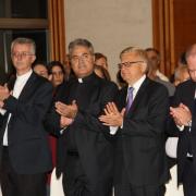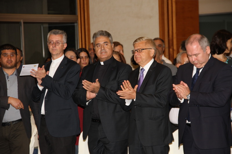 Pour sa part, l’ambassadeur de Russie S.E.M. Alexandr Zasypkin a adressé un bref message, manifestant sa joie de partager les arts russes avec le public libanais. Il a reçu du Père Recteur une plaque souvenir en reconnaissance à sa visite à Jamhour.