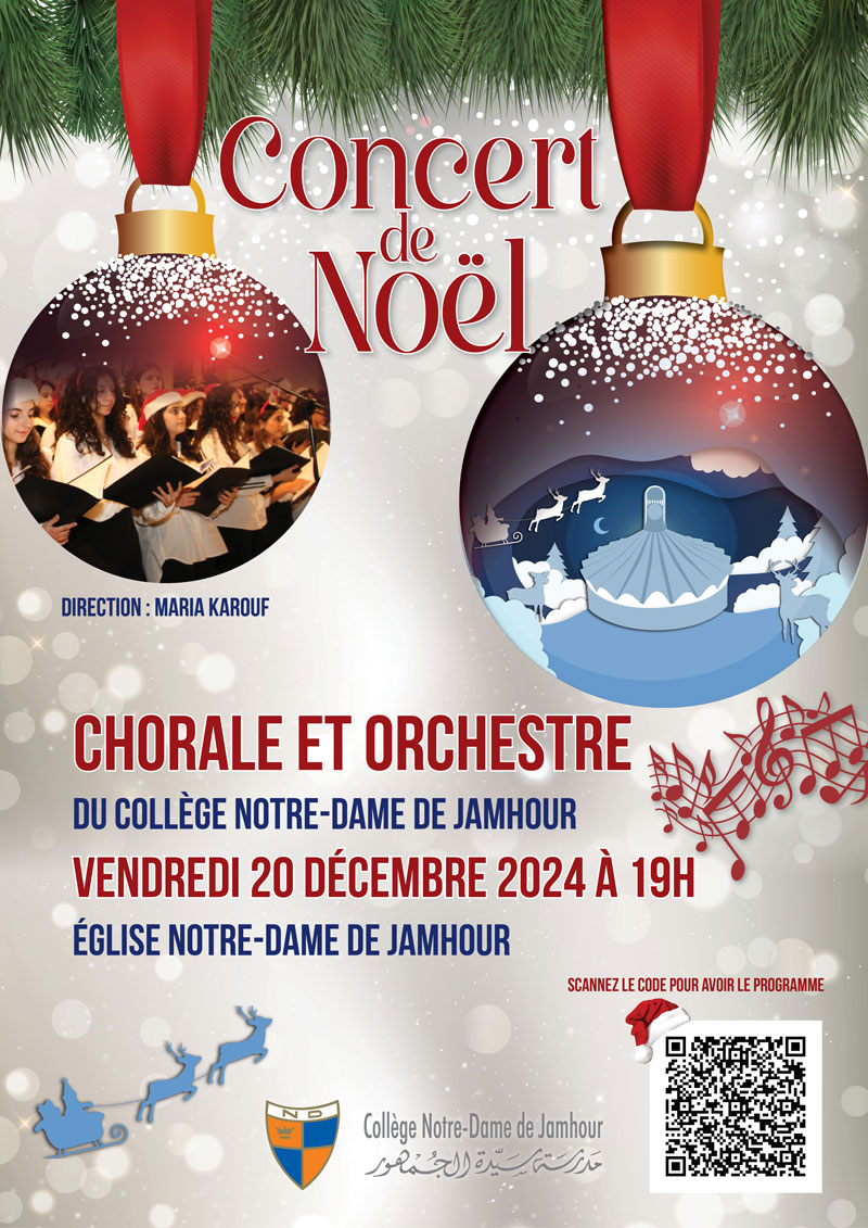 La Chorale et l’Orchestre du Collège Notre-Dame de Jamhour vous invitent à leur Concert de Noël, vendredi 20 décembre 2024 à 20h en l'église du Collège Notre-Dame de Jamhour.