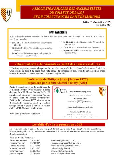 ASSOCIATION AMICALE DES ANCIENS ÉLÈVESDU COLLÈGE DE L'U.S.J. ET DU COLLÈGE NOTRE-DAME DE JAMHOUR