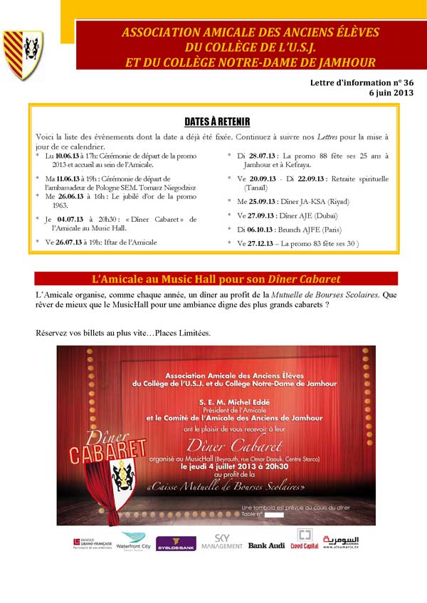 Amicale : Lettre d'information n°36 (6 juin 2013)