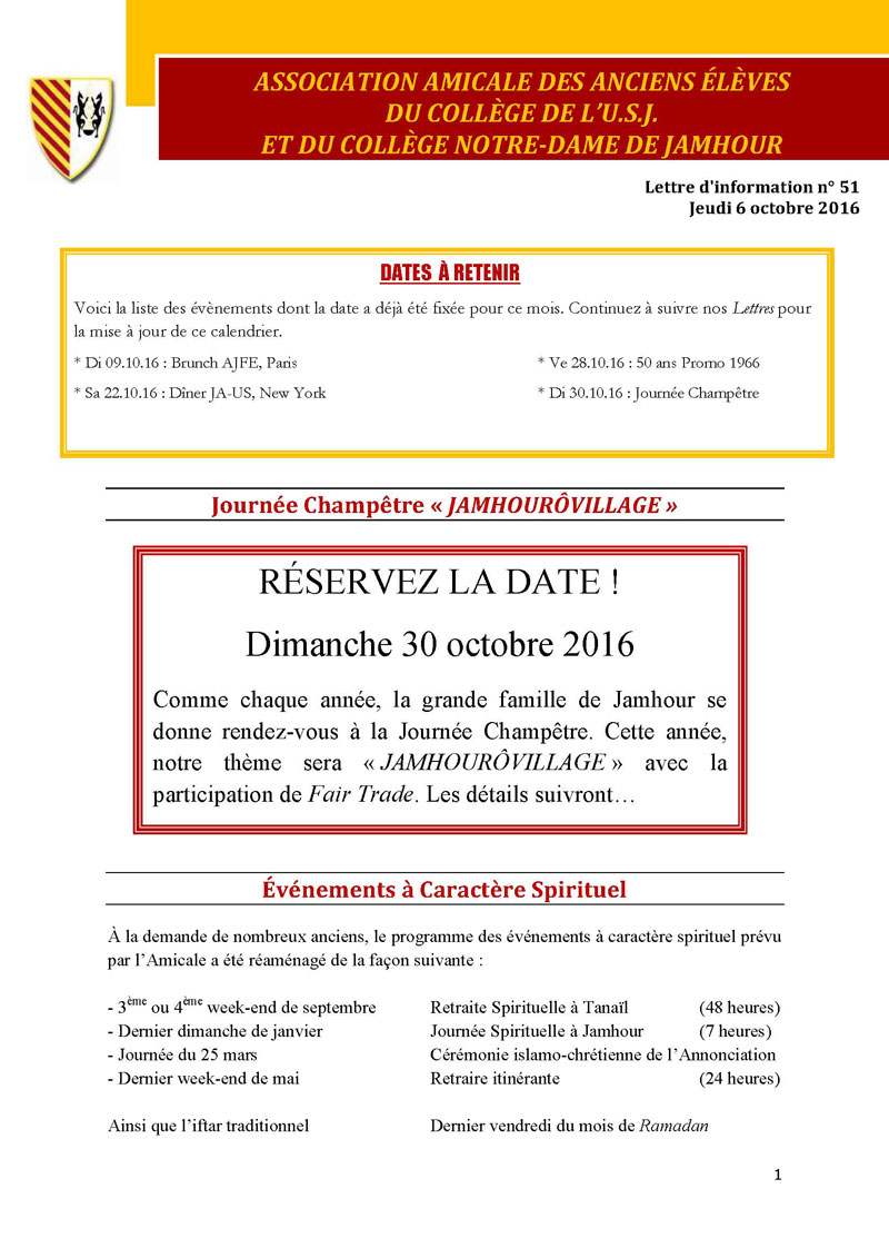 Amicale : Lettre d'information n°51 (06 octobre 2016)