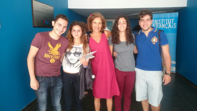 | M. Vincent Mas coordonateur de physiques chimie sur la zone du Proche-Orient, Mélissa Daou lauréate primée, moi-même chargée des acitivités de chimie liées à l'aefe, lauréats primé Elie fayad à la réception qui a suivi la distribution des prix. | De gauche a droite Marc Kanaan, Mélissa Daou, Nour Yazbeck et Karim Khalil candidat aux onc et chargé d'assister Mme Ghattas tout au long de cette activité. |