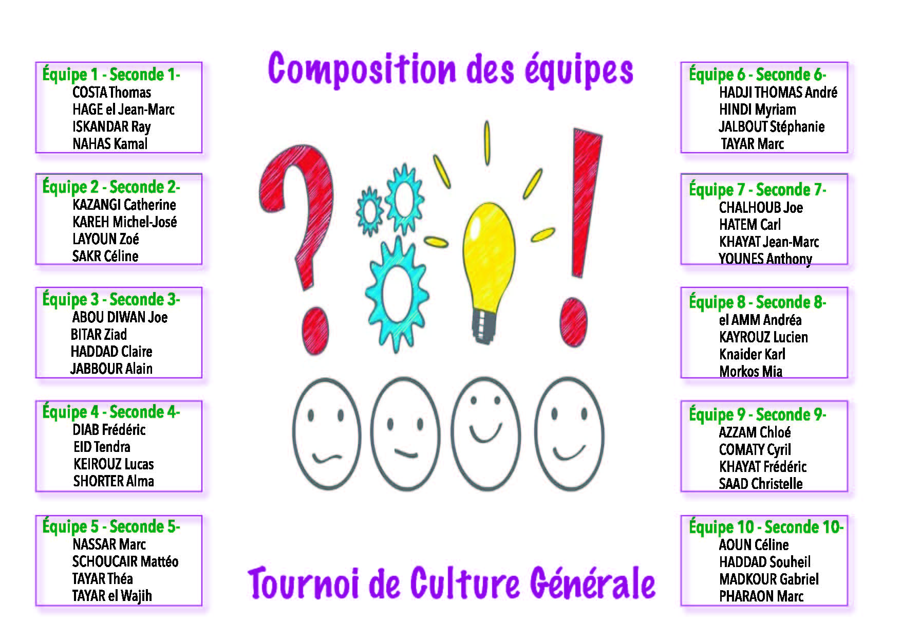 Féliciations à l'équipe de la Seconde 4 classée première au tournoi de culture générale.