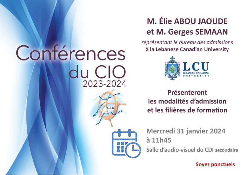 Le département d’information du CIO invite les élèves du secondaire à la présentation des modalités d’admission et les filières de formation à la Lebanese Canadian University