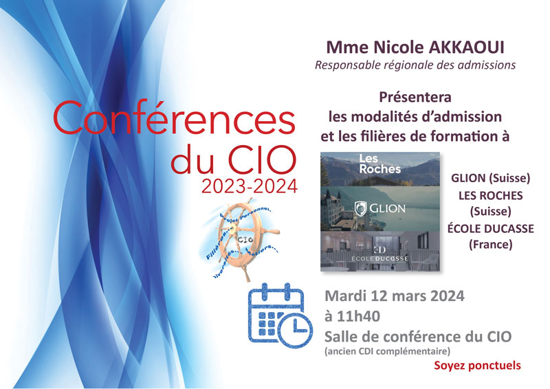 Mardi 12 mars 2024 à 11h40 - Salle des conférences du CIO (ancien CDI complémentaire)