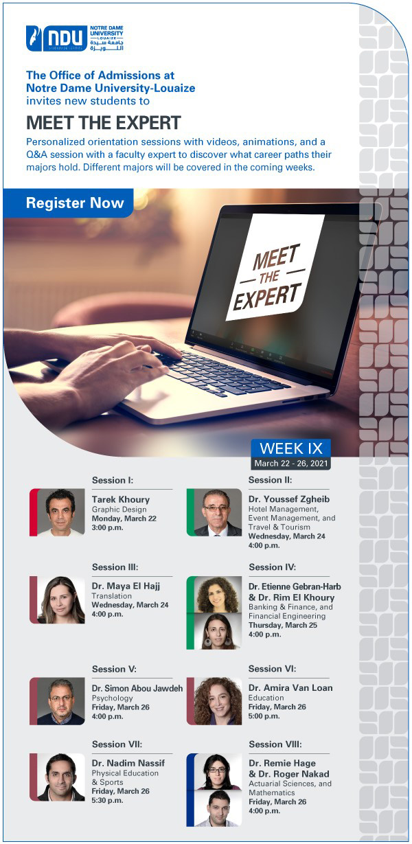 Invites new students to Meet the expert: March 22 - 26, 2021