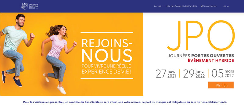 Université Catholique de Lille organise une Journée Portes Ouvertes hybride, en distanciel, le samedi 27 novembre 2021.