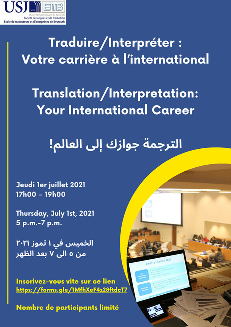 Si les métiers de traducteurs et d’interprètes vous intéressent, suivez la session en ligne du 1er juillet 2021, inscrivez-vous à travers le lien :