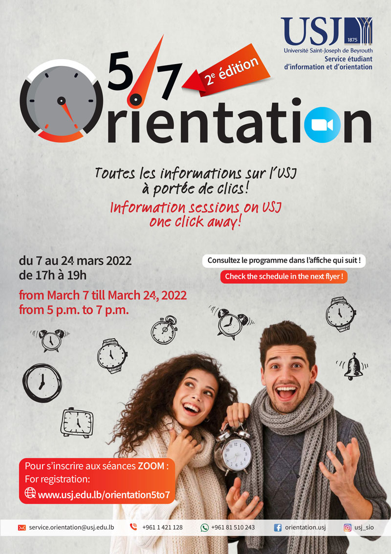 Inscriptions : https://www.usj.edu.lb/orientation5to7/