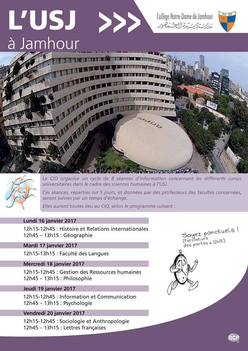 Le CIO organise un cycle de 8 séances d’information concernant les différents cursus universitaires dans le cadre des sciences humaines à l’USJ.