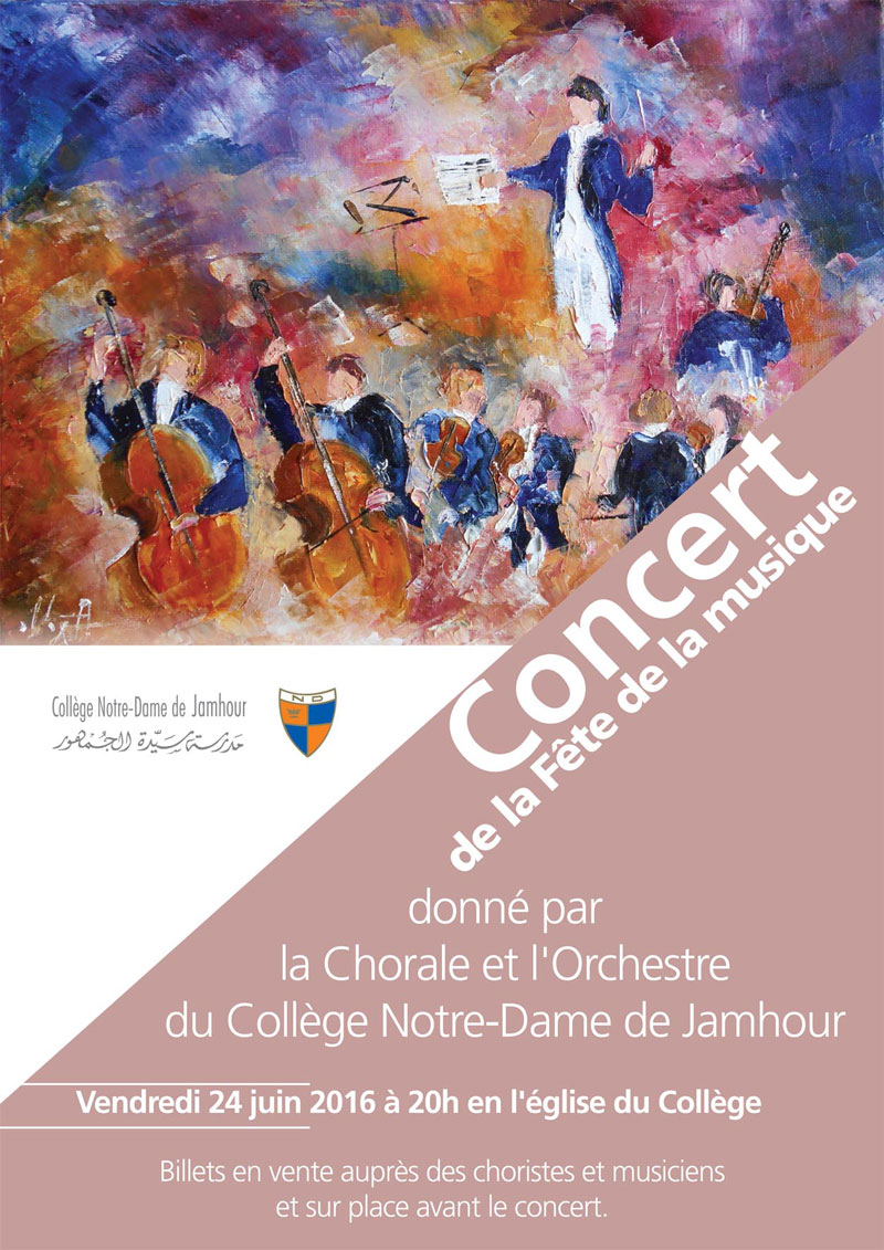 Donné par la Chorale et l’Orchestre du Collège Notre-Dame de JamhourVendredi 24 juin 2016 à 20h en l’église du CollègeBillets en vente au Collège Notre-Dame de Jamhour et sur place, avant le concert