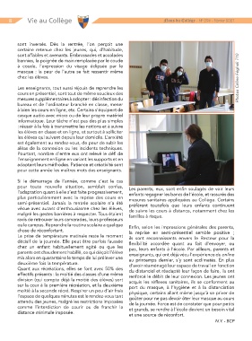 plus particulièrement avec la reprise des cours en mesures sanitaires appliquées au Collège. Certains