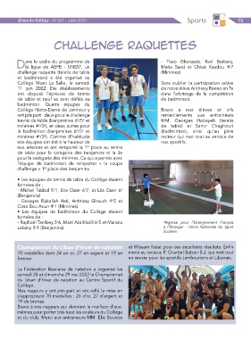 Nous du Collège - N 297 - Juillet 2022 Sports 75