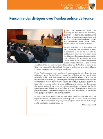 avec la future génération du pays, ainsi que pour les délégués du Collège