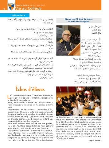 un drapeau libanais ou arboraient un foulard aux élève de Terminale ont ensuite été prononcés.