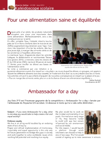 l’alimentation saine. auprès des élèves de 8e du CSG.