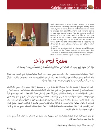 ٍلداع ٍعمتجم لىع َنْلصحيل َّنهفتاكتو َّنهتاحومط قيقحت لىع قارعلأاو نايدلأاو تايسنجلا فلتخم نم ءاسنلا عيجشتل ٍ تارتمؤم ةماقإ