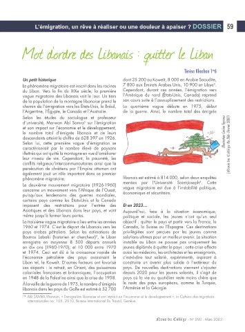 Selon lui, cette première vague d’émigration se (Nous du Collège No 266- Février 2007)