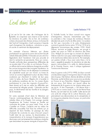 64 DOSSIER L’émigration, un rêve à réaliser ou une douleur à apaiser ?