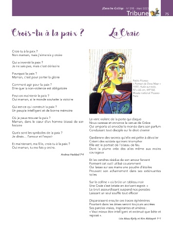 Comment agir pour la paix ? « Portrait de Dora Maar »