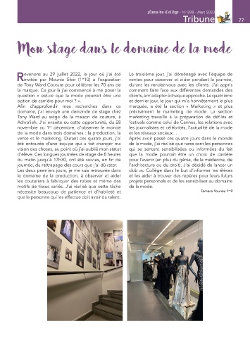 d’élève. Ces longues journées de stage de 8 heures que la mode pourrait être un choix de carrière