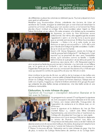 jésuites d’avoir institué ce collège. Mme Soumoundjian salue l’esprit du Père