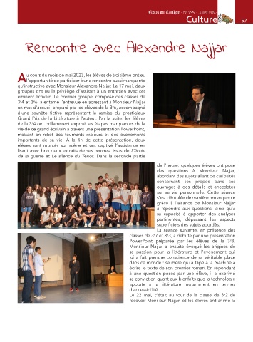 recevoir Monsieur Najjar, et les élèves ont animé la