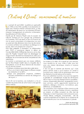 d’Orient (catéchètes) au service du dialogue et Pour une catéchèse incarnée, nous sommes appelés