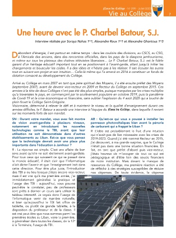 années difficiles, le P. Batour a accordé une interview à l’équipe du Nous du Collège, dans laquelle il revient