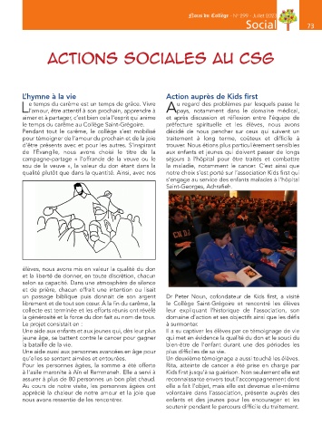 Pendant tout le carême, le collège s’est mobilisé décidé de nous pencher sur ceux qui suivent un