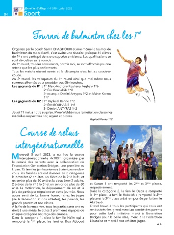 badminton du mois d’avril, s’est avéré une réussite, puisque 44 élèves