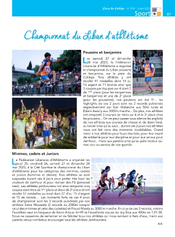 celui des minimes et celui des cadettes) et Fouad Mawla au 3000 m marche. En plus de ces 3 records, notons