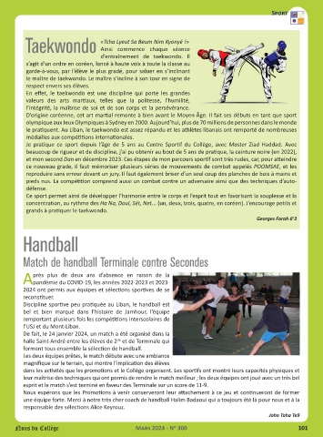 Je pratique ce sport depuis l’âge de 5 ans au Centre Sportif du Collège, avec Master Ziad Haddad. Avec
