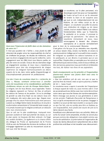 chrétiennes vécues au sein du Groupe Notre-Dame ? Le scoutisme nous a appris à accorder de l’importance