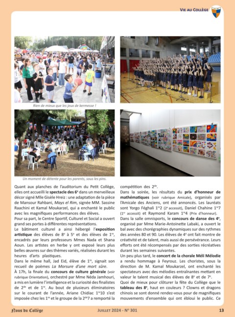 avec les magnifiques performances des élèves. (1 accessit) et Raymond Karam 1 4 (Prix d’honneur).
