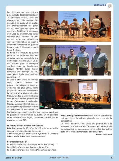 finale a réuni 7 élèves et la demi- Les finalistes de 1 avec leur Préfet et le Père Recteur.