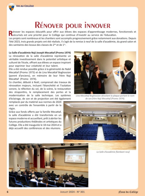 l’été 2023, trois grands projets ont été réalisés. Il s’agit de la remise à neuf de la salle d’académie, du grand salon et