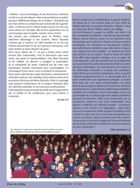 Des élèves de 1 après leur rencontre avec le metteur en scène Céline Abi Nader 1 1