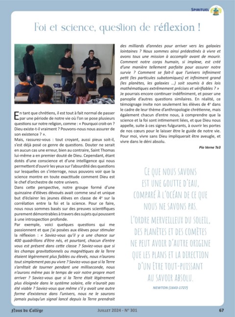 Epar une période de notre vie où l’on se pose plusieurs science et la foi sont intimement liées, et que Dieu nous