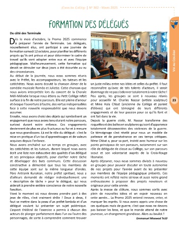 les catéchètes et les tuteurs, durant lequel nous avons rôle de déléguée de classe au Collège, sur son parcours