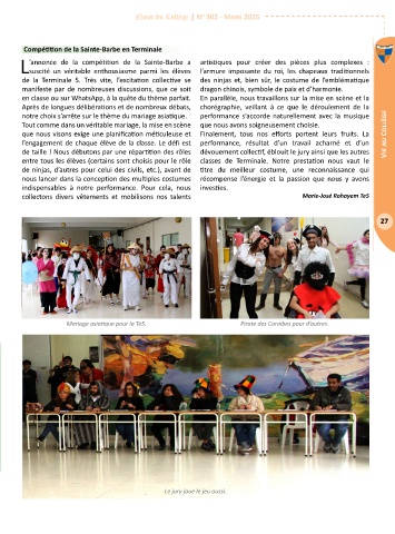 entre tous les élèves (certains sont choisis pour le rôle classes de Terminale. Notre prestation nous vaut le