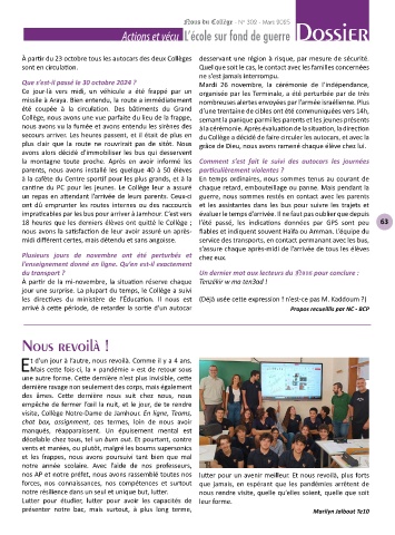 Actions et vécu L’école sur fond de guerre Dossier