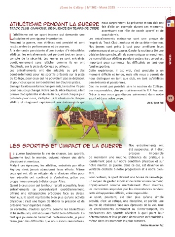 Les sportifs et l’impact de la guerre Nos entraînements ont