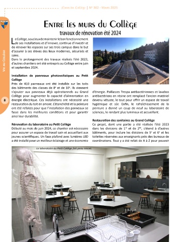 Rénovation du laboratoire au Petit Collège Ce projet, dont une partie a été réalisée l’été 2023