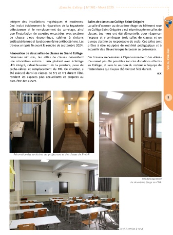 défectueuse et le remplacement du carrelage, ainsi au Collège Saint-Grégoire a été réaménagée en salles de