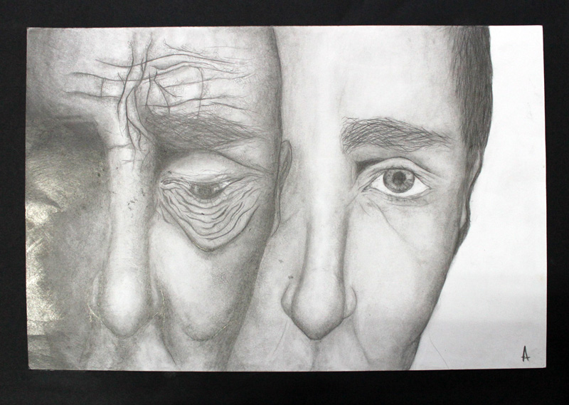 Dessin à la mine : "Le temps passe, mais sous ce masque demeure l'humanité"