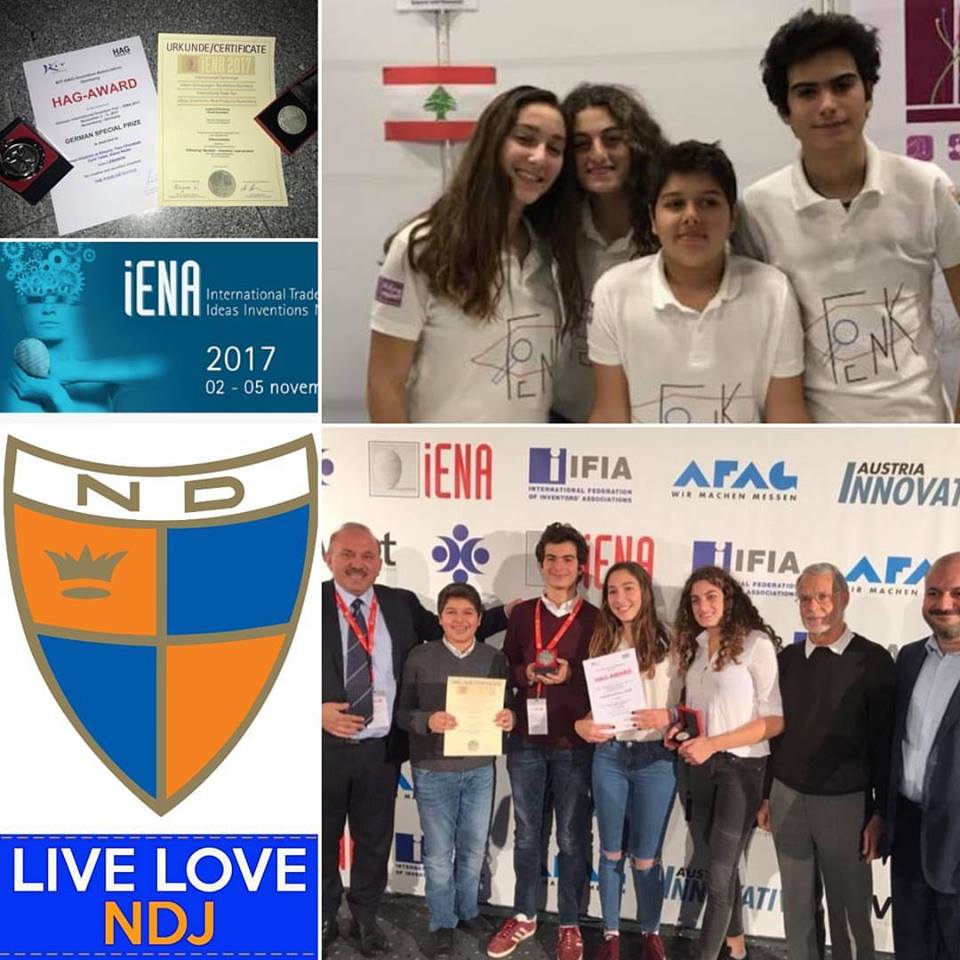 Food Detective (présenté précédemment sur ce site2 et dans le Nous du Collège) a décroché la médaille d’argent et la Médaille de l’Association des inventeurs allemands. [Projet de : Yara CHARABATI, Alexa NADER, Vladimir KHOURY et Cyril TABET élèves en 1re et 2de