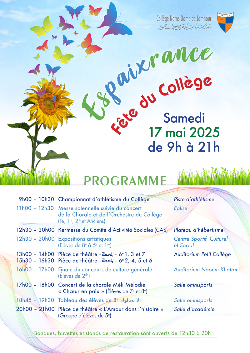La cérémonie au Grand Collège avait un cachet plus cérémonieux, en présence de parents d’élèves, membres des forces armées aux cotés de la communauté jésuite, des éducateurs et de la direction. La fanfare de l’armée libanaise a accompagné un défilé d’élèves des classes de 6e, 5e, 2de et 1re, et, après l’hymne national, des représentants des 4e et 3e ont rendu hommage aux martyrs du Liban majestueusement accompagnés par un duo chanté par deux élèves de Te.