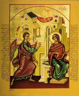 L’icône de l’Annonciation est le symbole expressif par l’écrit et l’image de l’ampleur du rapprochement de Dieu et de l’homme. Une présence spirituelle et angélique annonçait glorieusement l’immaculée conception.