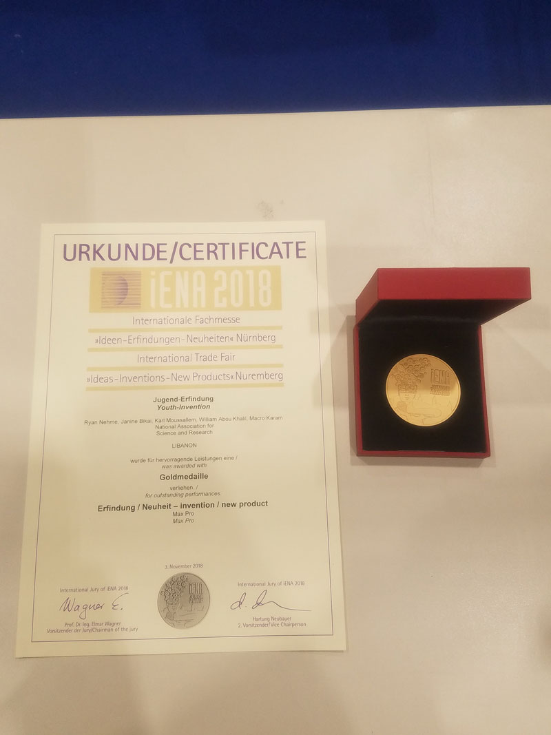 Victoire de Max Pro à la compétition mondiale des inventions, IENA 2018